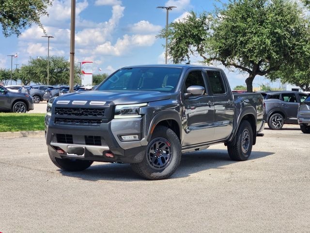 The 2025 Nissan Frontier PRO-X Crew Cab in Gun Metallic with a refined Steel interior delivers rugged performance and modern comfort. Powered by a 3.8L V6 engine with 310 horsepower and 281 lb-ft of torque, paired with a 9-speed automatic transmission, this truck is built for strength and reliability. With only 10 miles on the odometer, it offers an impressive fuel economy of